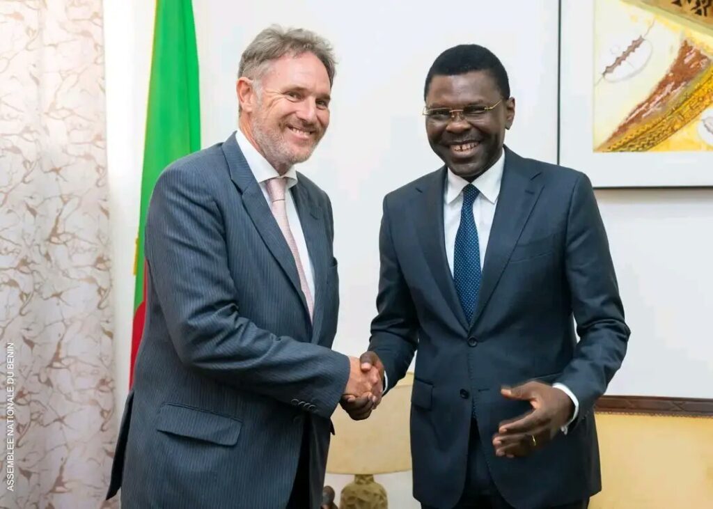 Au Bénin, le président de l’Assemblée nationale Joseph Djogbénou a reçu en audience ce lundi 23 février 2026, Joris P.W Jurriëns. Il est l’Ambassadeur extraordinaire et plénipotentiaire du Royaume des Pays-Bas près le Bénin.