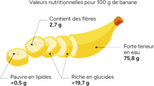 La teneur élevée en fibres de la banane favorise la sensation de satiété et semble réduire les ballonnements. L’amidon résistant contenu dans la banane a également un effet prébiotique, en aidant à alimenter les bactéries intestinales afin qu’elles augmentent en nombre et produisent des composés bénéfiques appelés acides gras à chaîne courte.